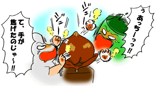 厄が落ちる前に、ヤケドするわいっ!!!!! |