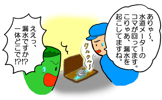 しかも。水道メーターを見てみますと、コマがすっごい勢いで回っているではありませんか。これはもう、えげつない量の水が、ムダに流れている証拠でございます!!