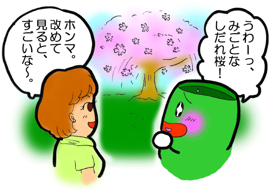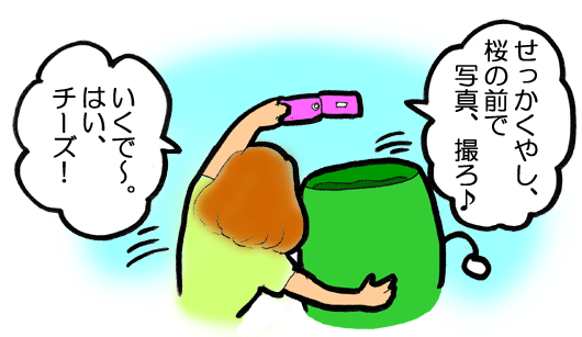「せっかくやし、桜の前で、一緒に写真を撮ろ♪」