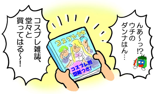 「コスプレ雑誌」を、堂々と買ってはる〜っ!!! |
