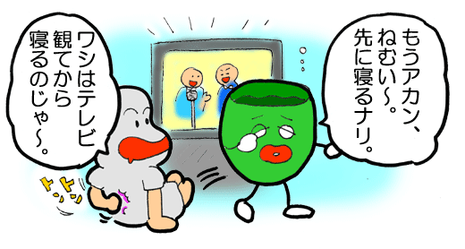 「もう、これ以上はムリ〜。先に寝るナリよ〜」