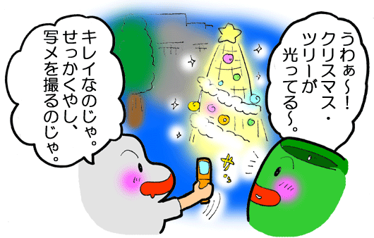 「あと一歩遅かったら、光っているツリーが見られなかった。ラッキー♪」