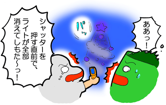 | ツリーのライトが、一瞬にして消えてしもた〜! |