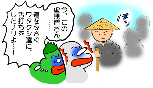 虚無僧といえども、人間でございます。「こいつらジャマや」 と思ったのは仕方ない事でございましょう。